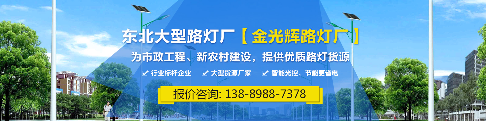 沈陽金光輝道路照明工程有限公司是一家從事太陽能路燈、庭院燈、高桿燈、景觀燈、草坪燈、工礦燈、LED照明、監控桿、信號燈桿、音樂噴泉等室內外照明燈具綜合性生產廠家及專業的研發、生產、銷售、服務為一體的技術企業。
